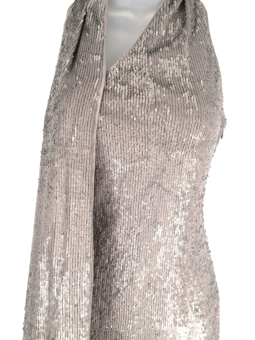 This is truly red carpet glamour, very chic shift sequin dress with all over sequins in neutral grey with shimmers of heather tones